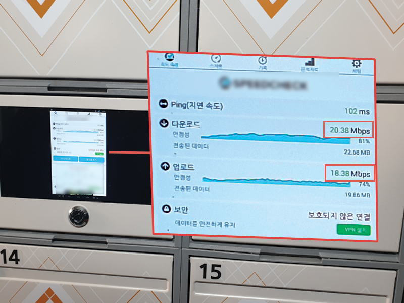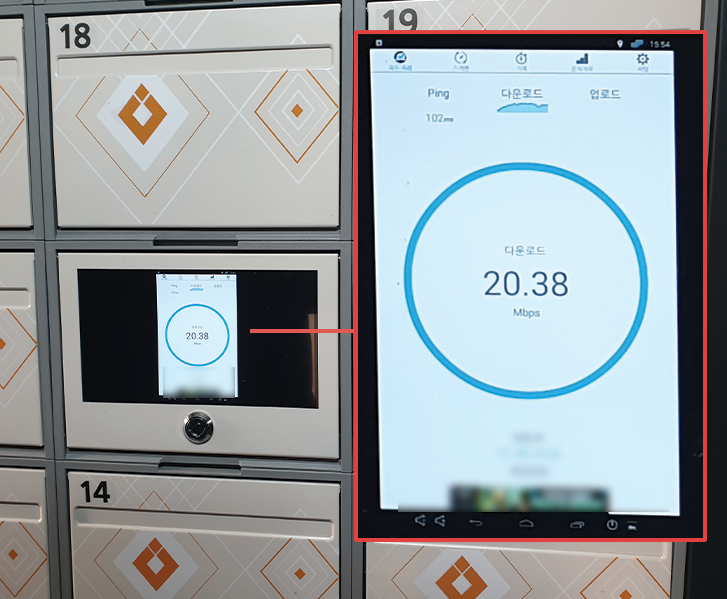 스마트 우편함에 라우터를 설치 후 속도를 체크하였습니다.