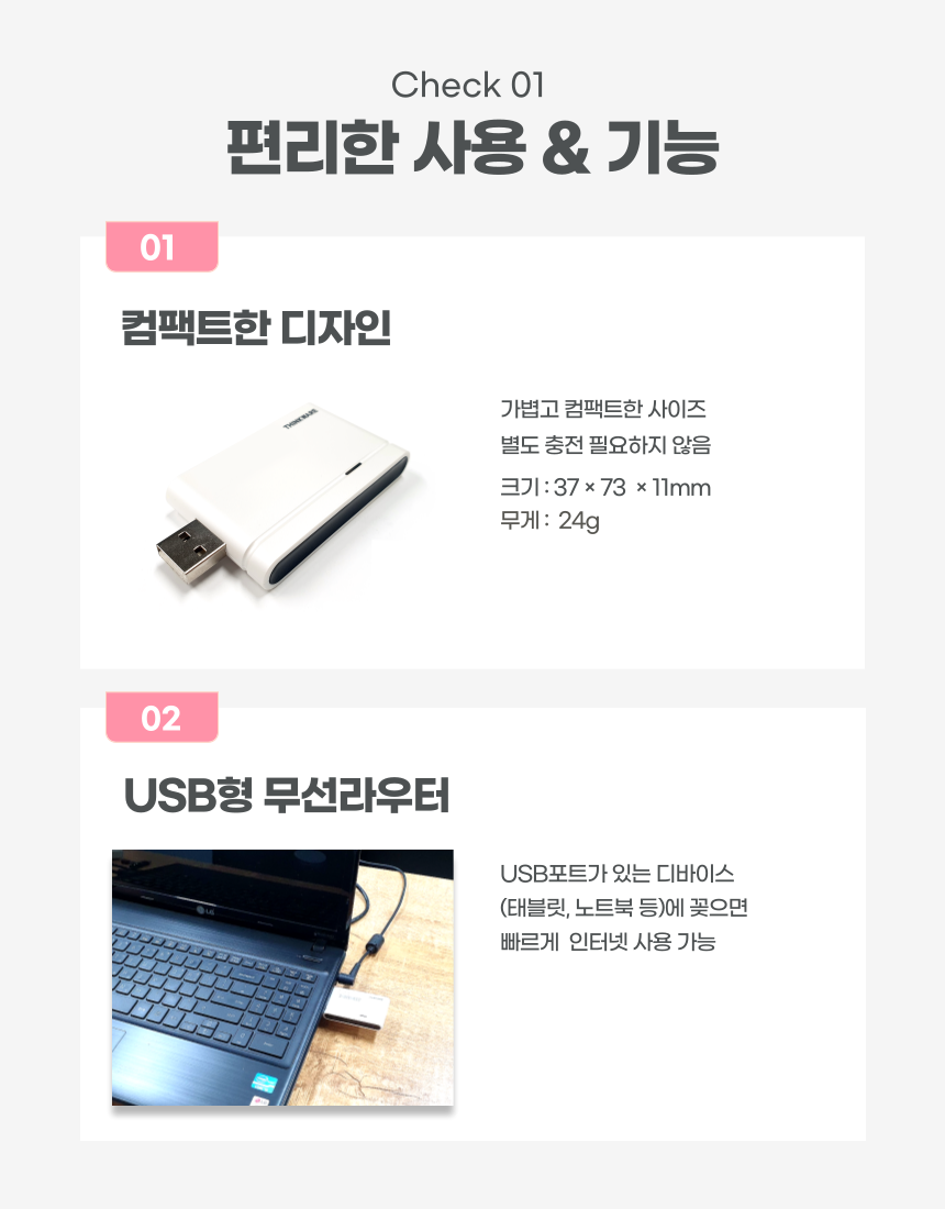 USB형 라우터, 설치없이 인터넷 사용, 휴대의 편리함