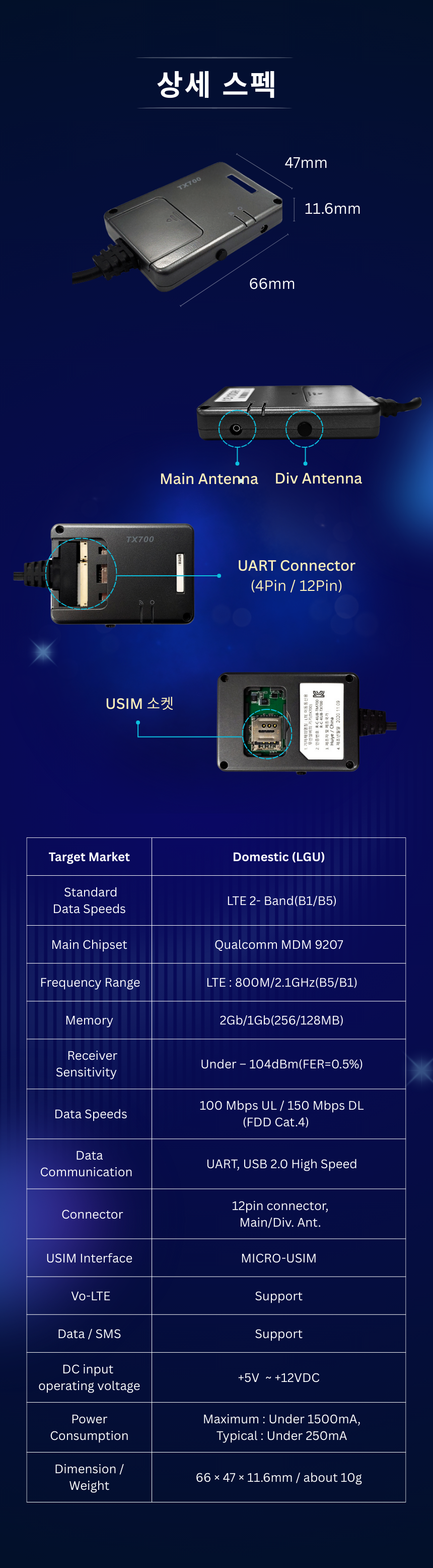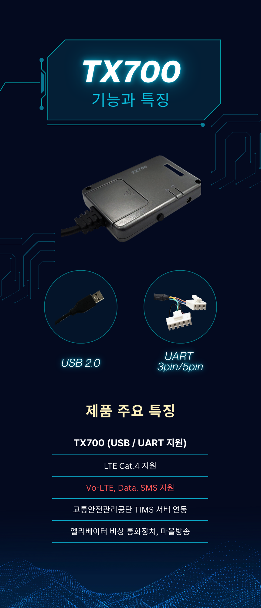 UART,USB 인터페이스 지원