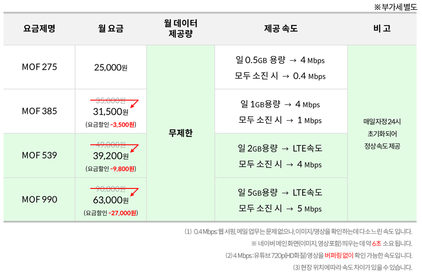 ▶ MOF 539 / MOF 990 요금제의 차이점?